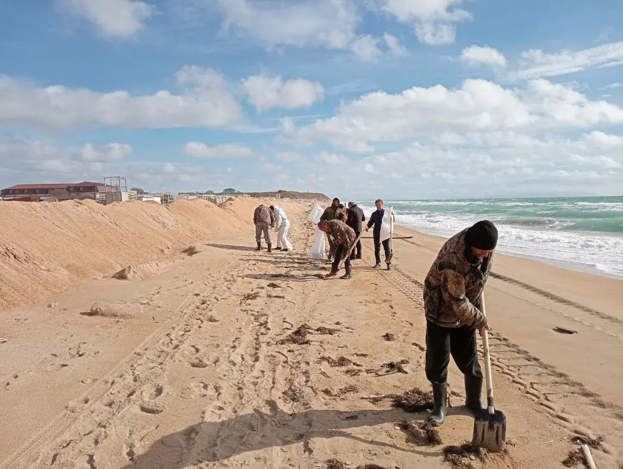 Незначительные фрагменты нефтепродуктов обнаружили утром 31 октября на четырех километрах береговой линии в районе поселка Волна и двух километрах – в районе поселка Веселовка, а также косе Тузла.